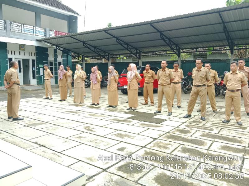 Apel pada tanggal 24 November 2025 dipimpin oleh Bapak Suparta, dengan amanat, acara pengisian pamong mohon didukung dari semua pihak. Dan semoga pengisian pamong berjalan lancar.