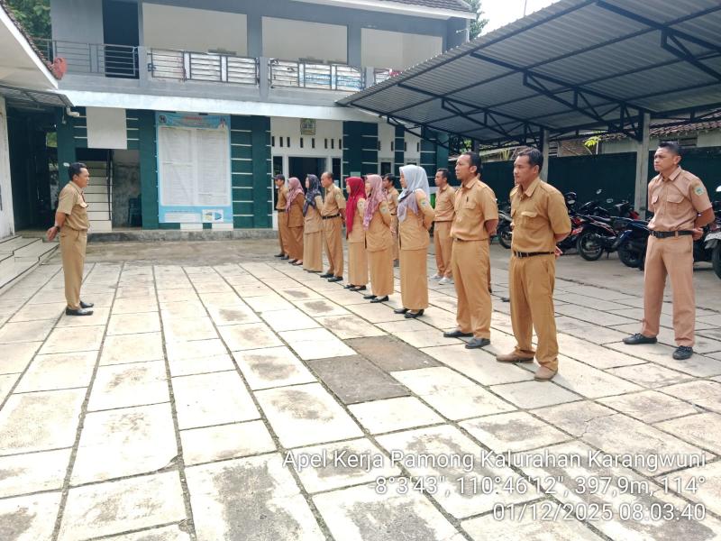 Tanggal 01 Desember 2025, Lurah dan Pamong di Kalurahan Karangwuni melaksanakan apel terlebih dahulu sebelum bekerja. Pada apel kali ini dipimpin oleh Bapak Ari Yuli Endarto, S.I.P, beliau berpesan untuk menyelesaikan pengajuan yang berhubungan dengan DAIS sebelum tanggal 10 Desember 2025.