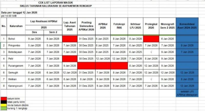 (SID, Sida Samekta). Pemrintah Kalurahan Karangwuni Kapanewon Rongkop, mendasar List yang telah dikeluarkan oleh Kepala Jawatan Praja kapanewon Rongkop, telah menyelesaikan seluruh kewajiban yang harus dilaksanakan terkait penyelesaian Administrasi Pemerintah Kalurahan Tahun Anggaran 2025.