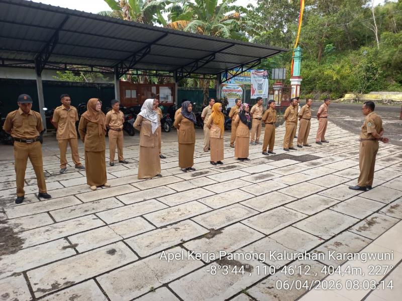 Tanggal 06 April 2026, di halaman Balai Kalurahan Karangwuni, Lurah dan Pamong Kalurahan Karangwuni melaksanakan apel pagi. Dengan pemimpin apel Bapak Ari Yuli Endarto, S.I.P, beliau mengucapkan banyak terimakasih atas ketertiban semuanya, dan tidak lupa juga mengucapkan terimakasih atas partisipasi 15 orang yang ikut hadir pada HUT Gubernur DIY yang ke-80 tahun. Perihal KDMP beliau mengatakan bahwa sudah dimulai pembangunannya.