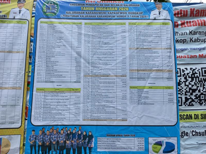 - Baliho Anggaran Pendapatan dan Belanja Kalurahan Tahun Anggaran 2026 telah terpasang di Halaman Kalurahan Karangwuni sebagai bentuk transparansi dan akuntabilitas pelaksanaan anggaran tahun 2026 pada masyarakat Kalurahan Karangwuni.