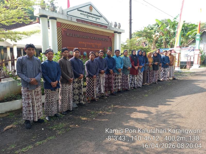 Tanggal 16 April 2026, pada pukul 08.30 WIB, Lurah dan Pamong Kalurahan Karangwuni mengadakan foto bersama pada Hari Kamis Pon. Hal itu dilakukan rutin setiap Hari Kamis Pon.
